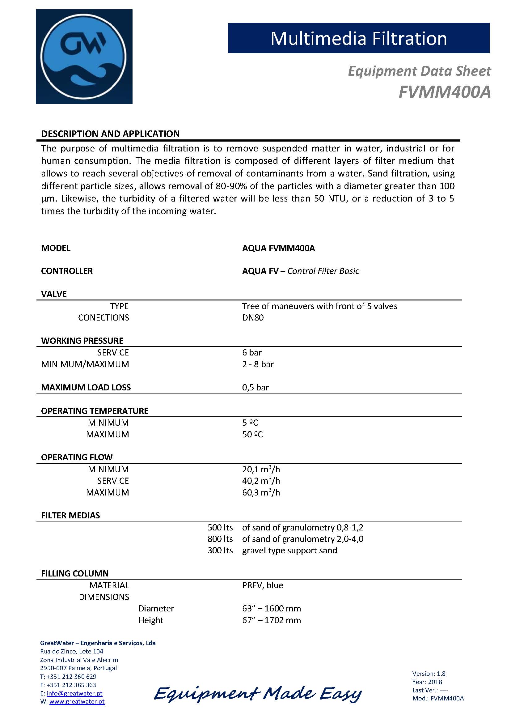 Multimedia filtration is intended to remove suspended matter in water, industrial or for human consumption. Multimedia filtration is composed of different layers of filtering medium that allows to achieve various objectives of removal of contaminants from a water.